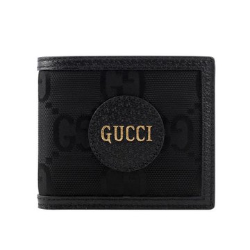 GUCCI 625573 Off The Grid 燙金LOGO尼龍對開8卡短夾.黑