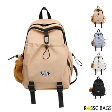 【Rosse Bags】少女小熊掛飾文青學院風格電腦背包(現+預 黑色/卡其色/白色/藍色)