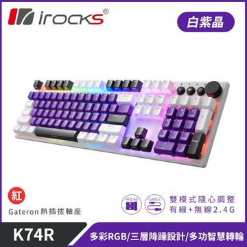 【iRocks】K74R 機械式鍵盤 熱插拔 Gateron軸|白紫晶/紅軸
