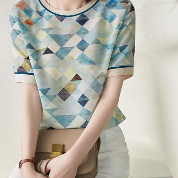 【LANNI 藍尼】★撞色菱格雪紡感上衣(上衣/女裝/T恤/休閒/百搭)