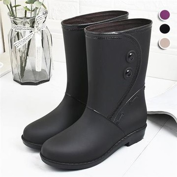 新晉 飾釦長筒防水靴 黑 女鞋