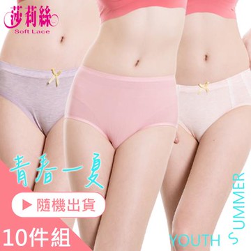 【莎莉絲】☆青春一夏☆親膚無縫天然裸棉中腰三角褲 / 高腰莫代爾無痕內褲 10件組(隨機出貨)-型