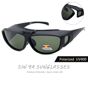 【SINYA】上翻式偏光墨鏡 砂黑框墨綠片 包覆式墨鏡/可外掛套鏡/抗UV400/防眩光/遮陽
