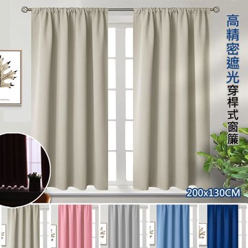 【傢飾美】高精密純素色穿桿式抗UV遮光窗簾/200*130*1窗2片(可洗衣機洗/窗簾/拉簾/風水簾/門簾)