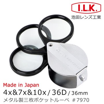 【日本 I.L.K.】4x&7x&10x/36D/36mm 日本製金屬殼三鏡式攜帶型放大鏡 7970