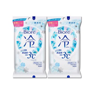 (2包超值組)日本KAO花王-Biore蜜妮瞬間涼感約-3°C身體用清潔濕巾20抽/包-無香(去油污濕紙巾,純棉潔膚巾隨身包,沁涼降溫,夏日出遊必備)