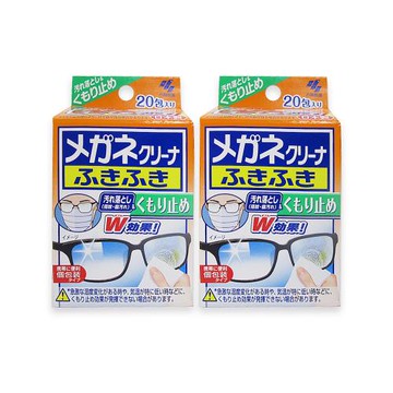 (2盒40包超值組)日本Kobayashi小林製藥-雙效去污速乾拋棄式眼鏡擦拭清潔濕巾20包/盒-防霧綠標(多材質鏡面除塵,旅行便攜獨立包裝擦拭布,鏡片起霧防護拭鏡紙)