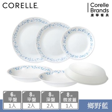 【美國康寧】CORELLE 鄉野藍6件式餐盤組附贈微波蓋