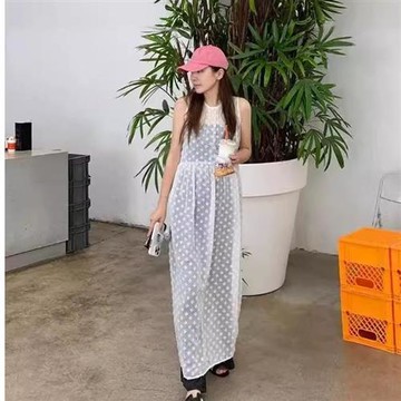 格格家 網紅主播性感辣妹抹胸顯胸大無袖鏤空緊身吊帶網衣連衣裙