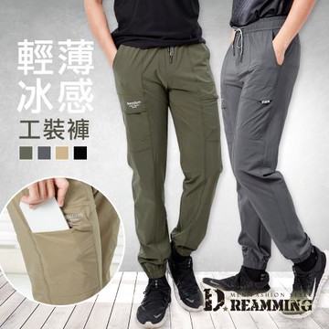 【Dreamming】輕薄冰感彈力修身工裝長褲 涼感 休閒 多口袋(共四色)