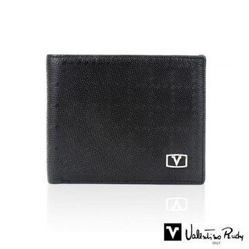 【Valention Rudy】范倫鐵諾 棋格紋 14卡右翻 2窗格 皮夾/男夾/短夾(黑色)