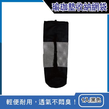 生活良品-束口式可調背帶瑜珈墊長型收納網袋-黑色