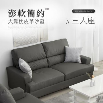 IDEA 莫菲皮革加大靠枕澎軟三人沙發椅/皮沙發贈隨機抱枕*2