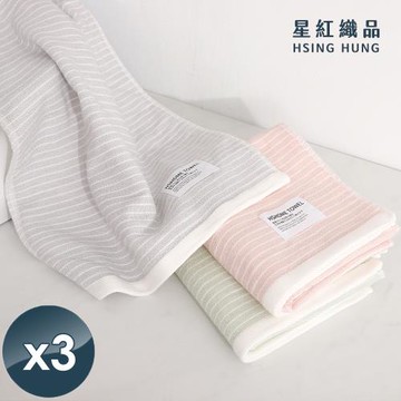 星紅織品 無印風格條紋柔軟瞬吸純棉毛巾x3入