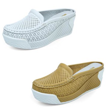 【Taroko】極簡態度圓頭坡跟鏤空真皮增高休閒鞋(4色可選)