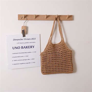 大容量單肩法式草編包 新款簡約鉤織手提編織包女海邊度假沙灘包