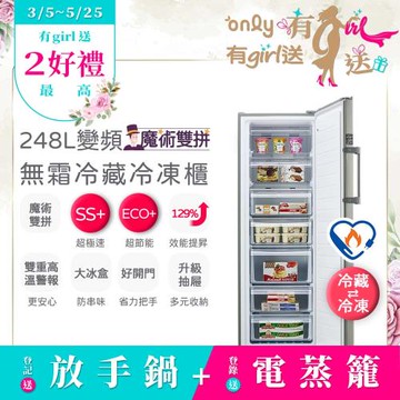 【0305-0525 only有girl送】only魔術雙拼248L變頻無霜冷藏冷凍櫃OU248-M06ZRI(直立式/水產團購.鍋物烤肉組囤貨)