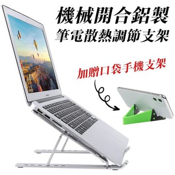 【加贈口袋手機支架】機械開合筆電散熱支架