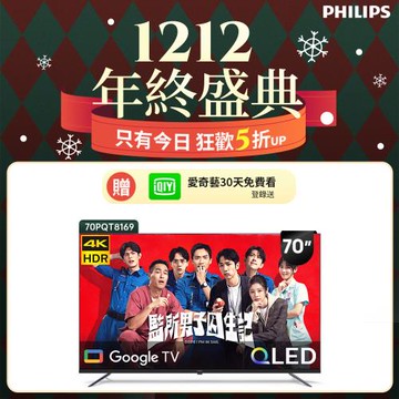 Philips 飛利浦 70型4K 120Hz QLED Google TV 智慧顯示器 70PQT8169 (送基本安裝)