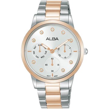 ALBA 雅柏 典雅晶鑽三眼氣質腕錶/銀X玫瑰金/35mm (VD75-X134KS/AP6724X1)