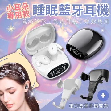 【CHYUNYAO】隱形貼耳 睡眠藍牙耳機+車載重力皮革手機支架