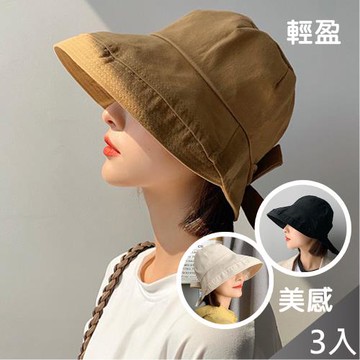 QiMart 日系百搭蝴蝶結純色防曬漁夫帽/遮陽帽(A款)x3入