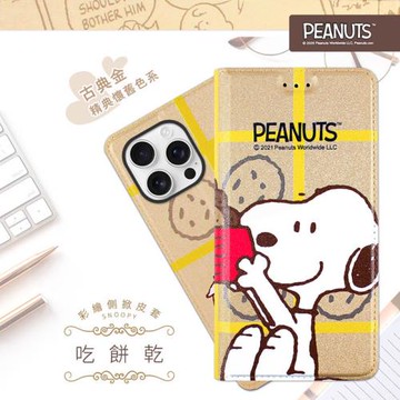 【SNOOPY/史努比】iPhone 17 Pro 彩繪可站立皮套(吃餅乾)