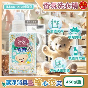(2瓶超值組)日本NS FAFA熊寶貝-繪本系列高滲透潔淨消臭香氛洗衣精450ml/瓶-麝香(衣物清潔劑,室內晾曬洗滌劑,去漬潔衣露,清新約48HR)