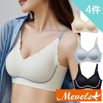 點我下載【Mevels 瑪薇絲】 4件花邊線條軟支撐無痕無鋼圈內衣/包覆內衣/舒適內衣/女內衣(M-XL)