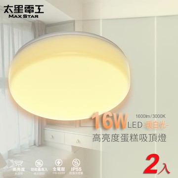 太星電工 LED高亮度蛋糕吸頂燈16W/暖白光(2入) WHB916L*2