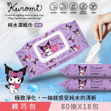 Sanrio 三麗鷗 酷洛米 輕巧包純水有蓋濕紙巾 80抽X18包 (加蓋) 不含添加使用更安心