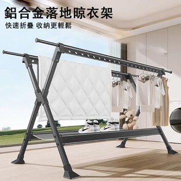 山柏 鋁合金落地晾衣架-可折疊免安裝(可伸縮延長桿 防風曬衣孔 小號)