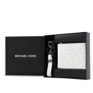 MICHAEL KORS GIFTING直紋滿版對開短夾(附證件夾)禮盒組-銀白 _廠商直送