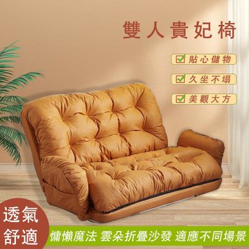 點我下載沙發 懶人沙發 可躺可睡網紅沙發 陽臺休閑雙人貴妃躺椅 臥室榻榻米 折疊小沙發 (五檔扶手調節 時尚拉點設計 貴妃橙120cm)