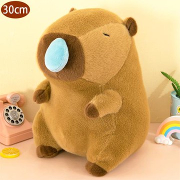 可愛呆萌卡皮巴拉水豚絨毛娃娃玩偶抱枕伸縮震動鼻涕款30公分 45-00284(生日禮物 聖誕節)【卡通小物】
