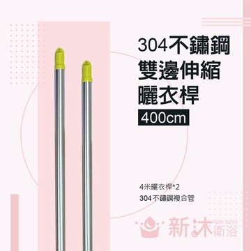 【新沐衛浴】雙邊伸縮304不鏽鋼曬衣桿(4米/304不鏽鋼/2入)