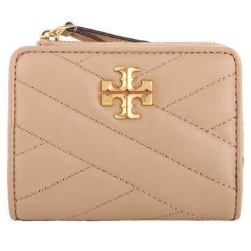 TORY BURCH KIRA 金字LOGO羊皮斜紋拉鍊零錢短夾-奶茶