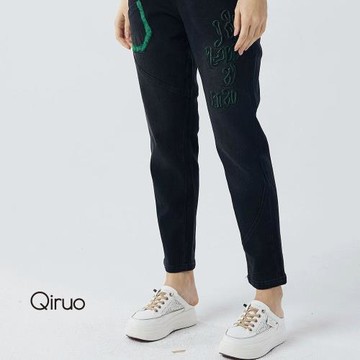 【Qiruo 奇若】秋冬專櫃黑色牛仔褲3220C 造型九分褲