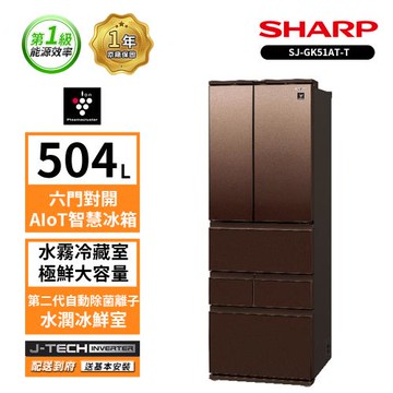 SHARP夏普 504公升 SJ-GK51AT 六門對開 AIoT智慧冰箱