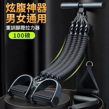 【時尚玩家】100磅重訓腳蹬拉力器 仰臥起坐健腹器(重訓拉力帶 皮拉提斯健身器)