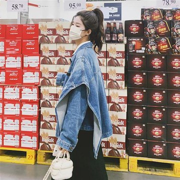 【米蘭精品】牛仔外套丹寧夾克-韓版披肩袖寬鬆休閒女外套牛仔藍色74ii64
