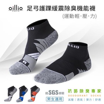 oillio歐洲貴族 (單雙組 灰色) 輕壓力足弓護踝緩震除臭襪 拚色 抗菌透氣 短襪 單一尺碼 男女適合 台灣製