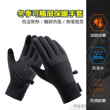防潑水厚暖觸控機能手套 - M / 黑