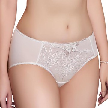 【思薇爾】晶燦珠戀系列M-XXL涼感消臭蕾絲刺繡中腰三角女內褲(奶酪白)