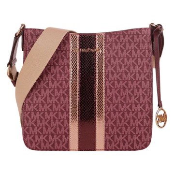 MICHAEL KORS- 滿版防刮玫瑰金條槓拉鍊斜背包(酒紅x金槓)小款