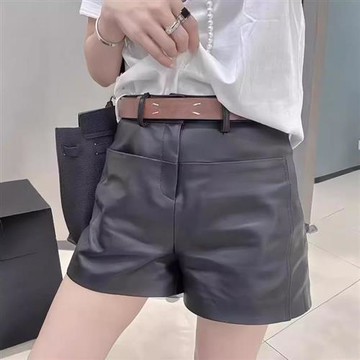 【巴黎精品】真皮短褲休閒褲-個性腰帶真皮短褲女褲子a1iv54