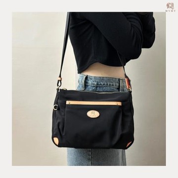 【MYMY】經典多層尼龍斜背包 經典黑 (尼龍/斜背/側背/防潑水/布包)