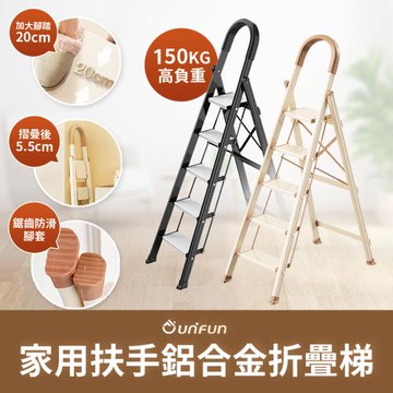【UNIFUN樂汎】家用扶手鋁合金折疊梯(四階)工具梯 摺疊梯 多功能梯 人字梯 梯子 摺疊梯 工作梯