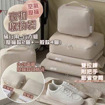 旅行外出大容量雙拉鍊手拉式衣物鞋子收納袋壓縮收納包(衣鞋6件套)