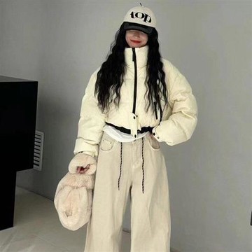 高品質90白鵝絨超厚寬松小個子連帽面包短款云朵puff泡芙羽絨服女